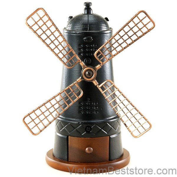 Casted steel body, especially concrete, beautiful and strong personality design. Grinding wheel imitates of a windmill which is manufactured in the flank. Inside the machine is imported, high-quality steel which provides high speed in grinding and even powder fineness, also coffee beans are prevented from falling out during progress with well design cap. Total net weight 6kg makes GD8539 firm and convenience to manipulate. This classic and useful machine was designed with strange looking appearance but still preserve the luxurious figure of a vintage coffee grinder. Steel surfaced. Grinding drawer is quite big and closely operated. GD8539 can be used as a decorate highlight: restaurant, bars... or even owner's living room, no matter where it's placed, GD8539 can easily show off its owner's class. Such a neat machine.